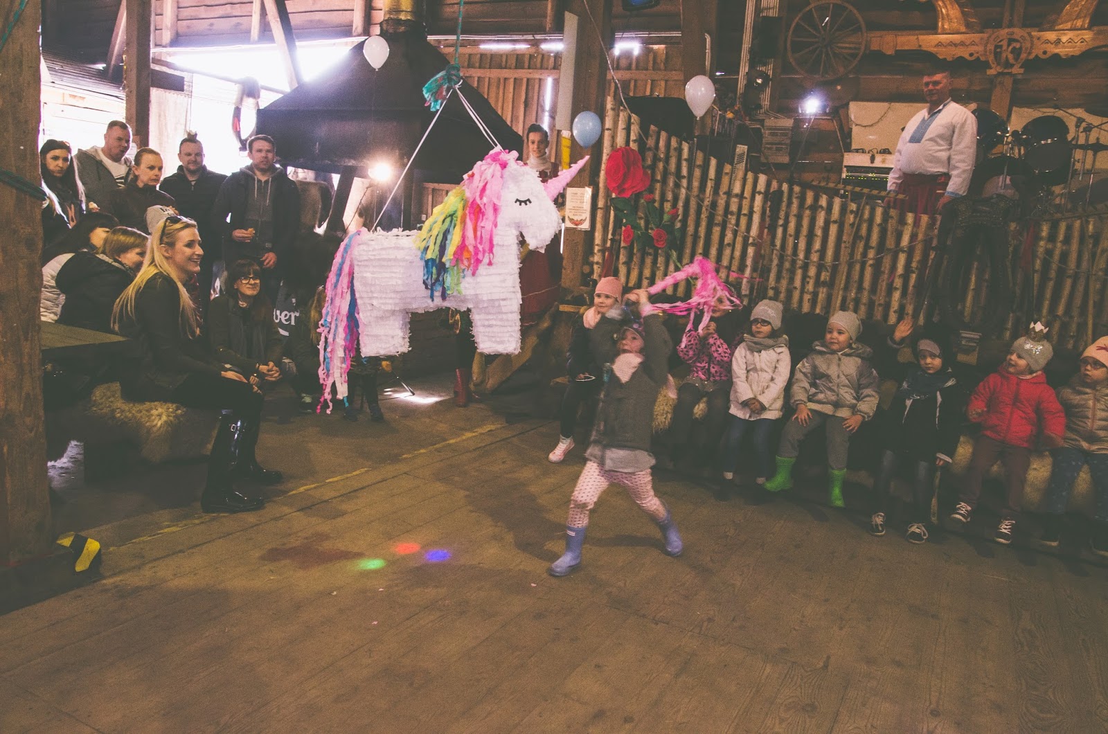 W naszym przypadku był to papierowy jednorożec wypełniony słodkościami i innymi giftami.